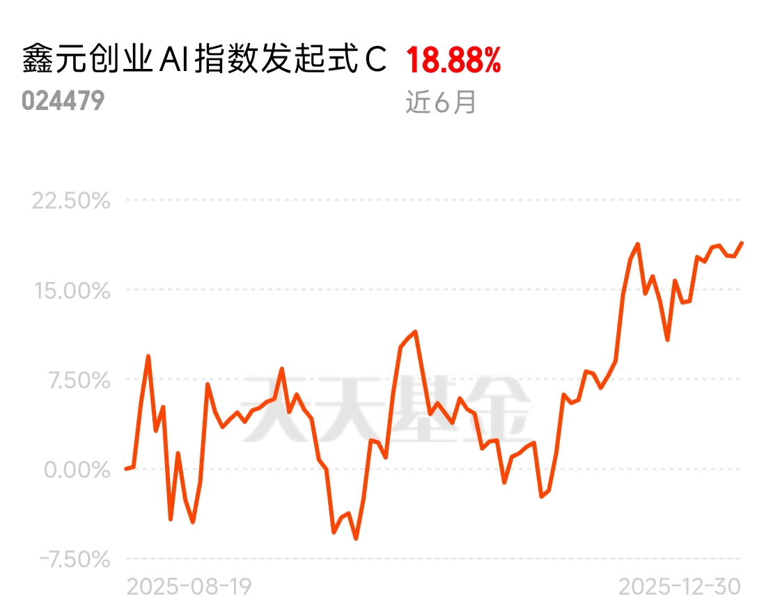 $鑫元创业AI指数发起式C$乘风AI赛道,近六月劲涨18.88%,无申购费,把握