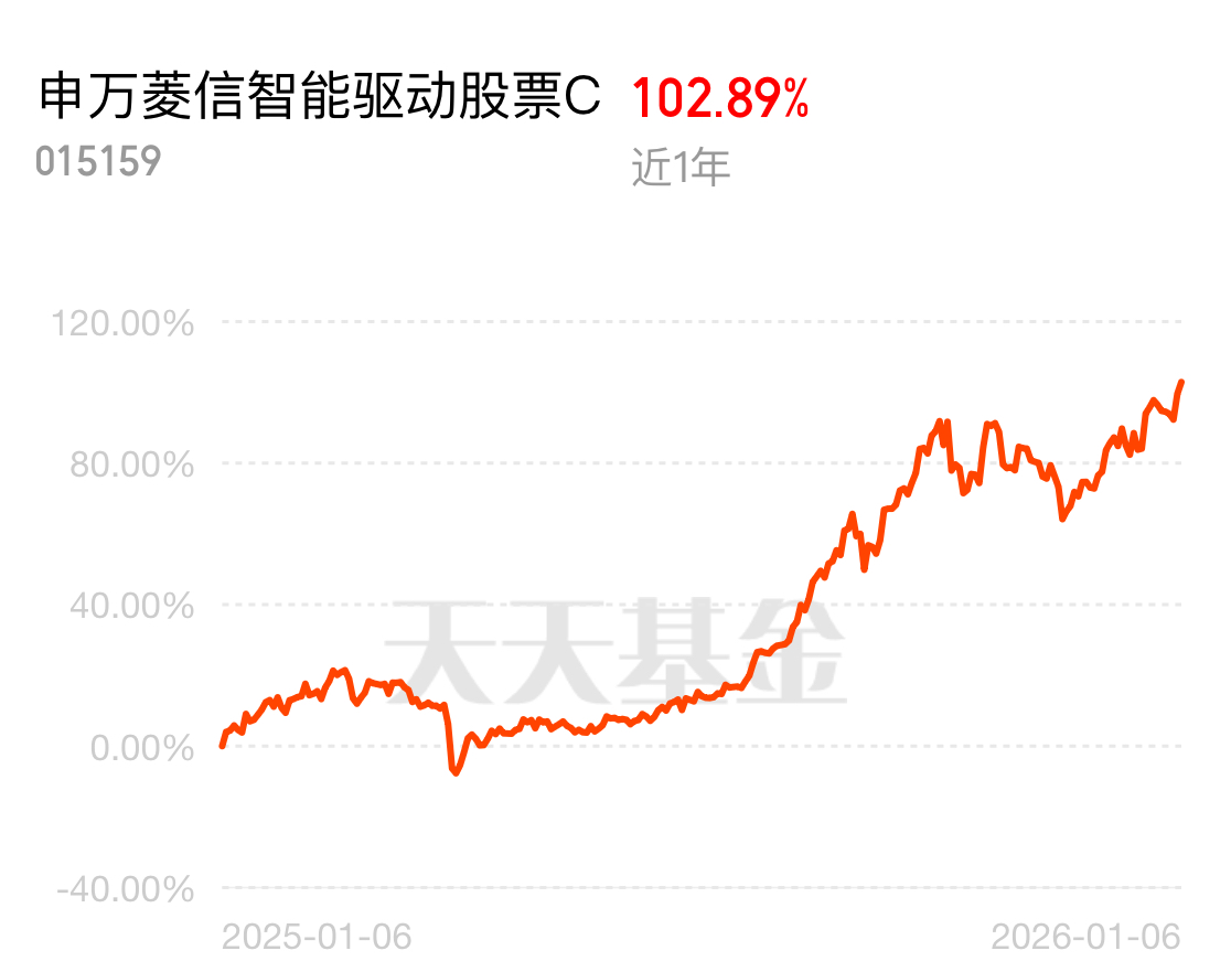 智能穿戴设备爆发,半导体产业链受益!申万菱信智能驱动股票表现不俗,申万菱信智能驱动 C 紧跟风口,各阶段业绩名列前茅,今天估值超 3 个点,近 1 年 102.89%,顺着科技行情涨不停,上涨势头超猛!$申万菱信智能驱动股票C$