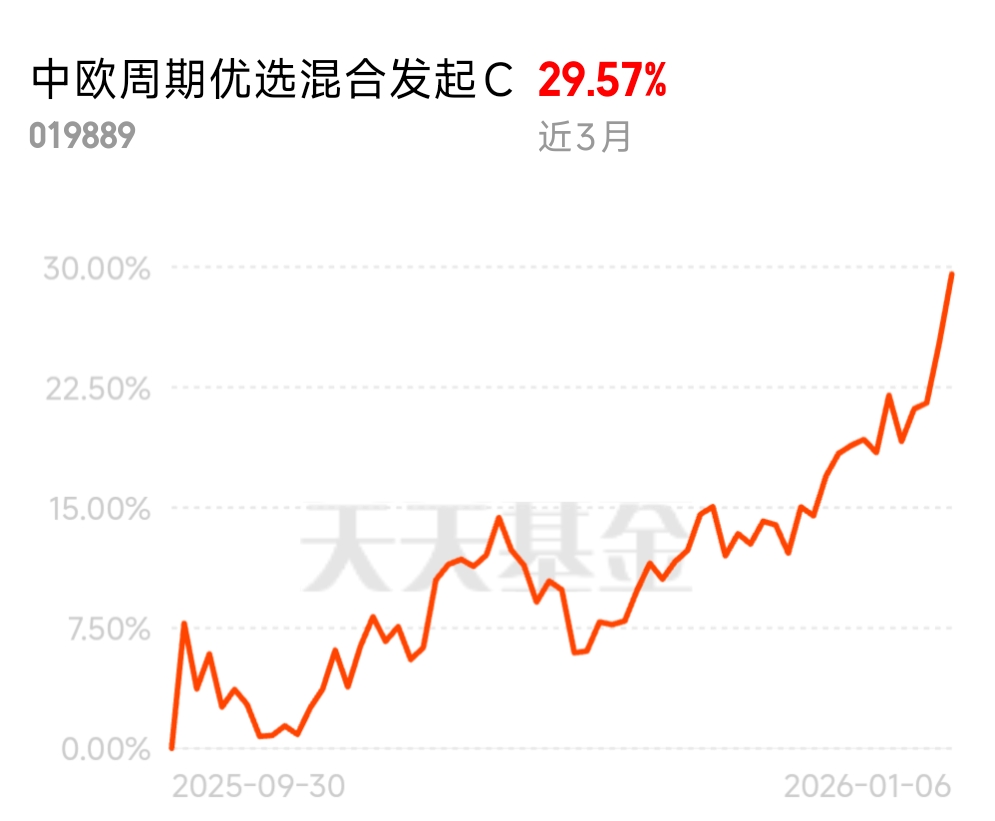 全球再工业化加速推进,能源转型进入深水区,关键金属需求激增!$中欧周期优选混合发起C$ 近 3 月 29.57%,资金扎堆抢筹周期资源,短期赚钱效应超足~