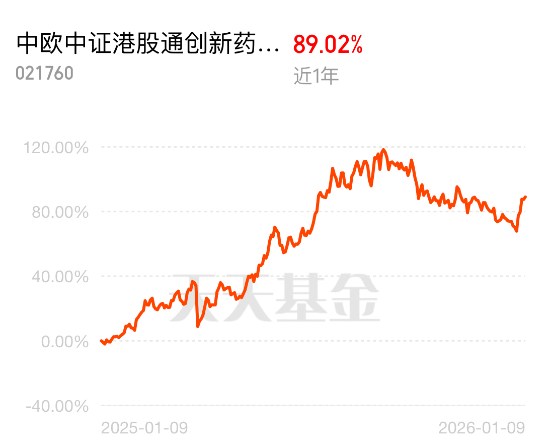最近市场结构性机会切换,科技股热度减退,波动却没减少。创新药当前估值很有吸引力,中欧中证港股通创新药指数发起 C 近 1 年 89.02%,跟踪专属指数,前十大重仓股都是龙头,板块行情来了能稳稳把握。
