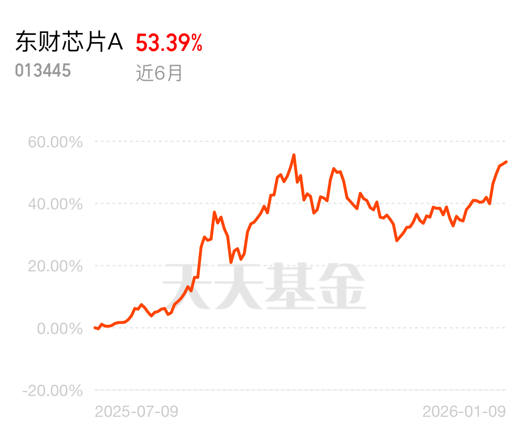 国际巨头撤离留下不少市场空白,国产芯片厂商正接棒发力,行业景气度拉满!东财芯片 A 近 6 月 53.39% 超给力,2026 只干芯片,我已经加仓了,跟着吃肉就等一个月翻倍!