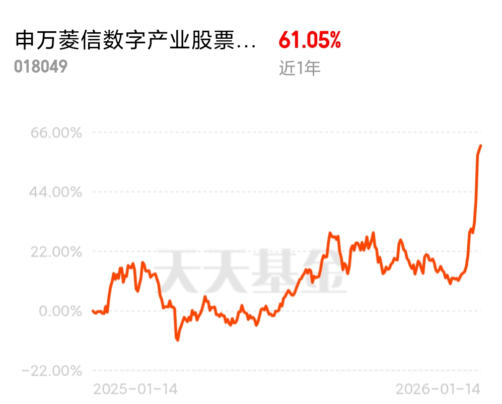 $申万菱信数字产业股票型发起式C$ 近一个月收益回报高达44.28%,12月以来几乎每日连涨,今天终于给了上车的机会!与同类主题基金相比,该基金波动处于正常区间,其聚焦硬科技的投资方向在产业周期中位置未变。