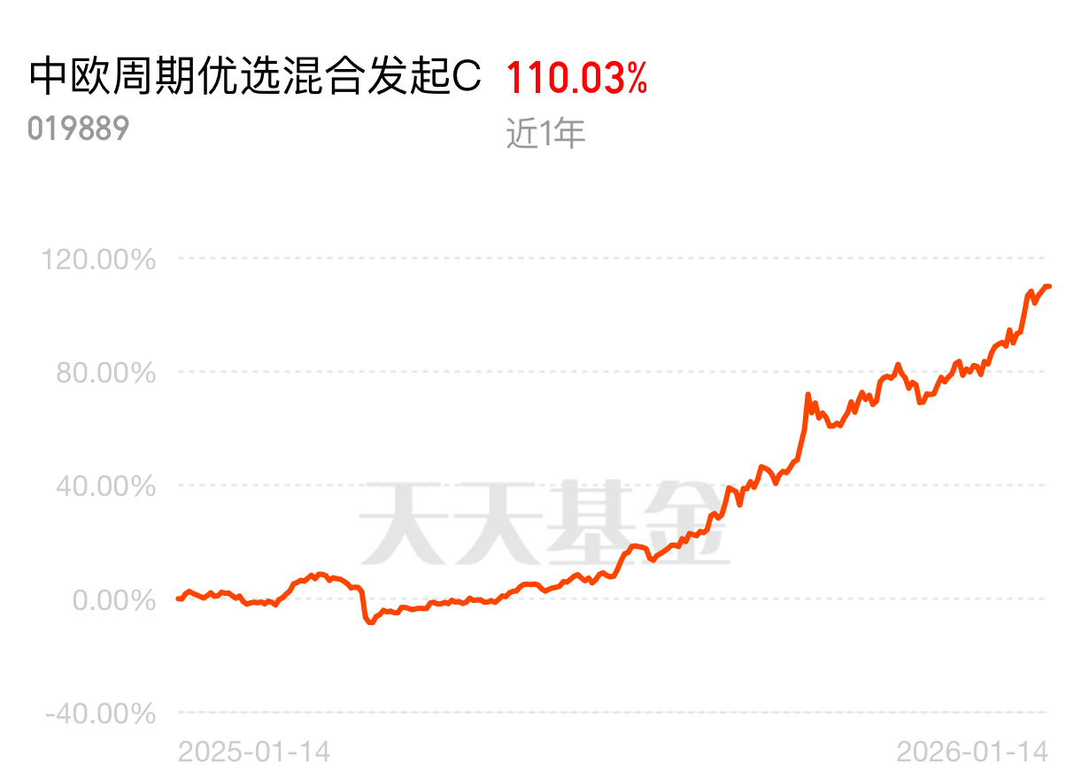 2026 慢牛格局下,周期反转机会来了,有色金属作为涨价链核心备受关注。中欧周期优选混合发起 C 近 1 年 110.03%,资源类基金里数一数二,紧密契合行情主线,抗通胀又稳赚。$中欧周期优选混合发起C$