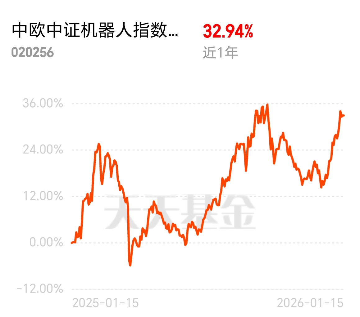 AI 大模型赋能机器人感知升级,运动控制技术突破,行业进入规模商用期。别乱追高,$中欧中证机器人指数发起C$ 近 1 年 32.94%,复制中证指数,布局更精准不踩坑。