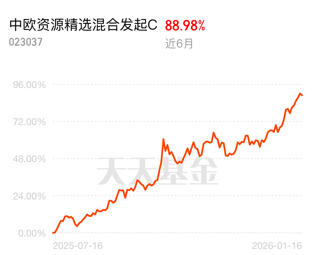 国家电网投资较十四五增长 40%,4 万亿资金将持续拉动能源金属需求。中欧资源精选混合发起 C 主打能源金属稳增长策略,近 6 月收益 88.98%,覆盖能源矿产、资源循环制造,在同类基金里业绩领先,长期配置价值凸显。