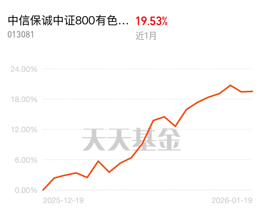 有色板块回调后反弹力度大,加仓收益空间足。中信保诚中证 800 有色指数 (LOF) C 近 1 月涨 19.53%,加仓布局,收获大反弹收益。$中信保诚中证800有色指数(LOF)C$
