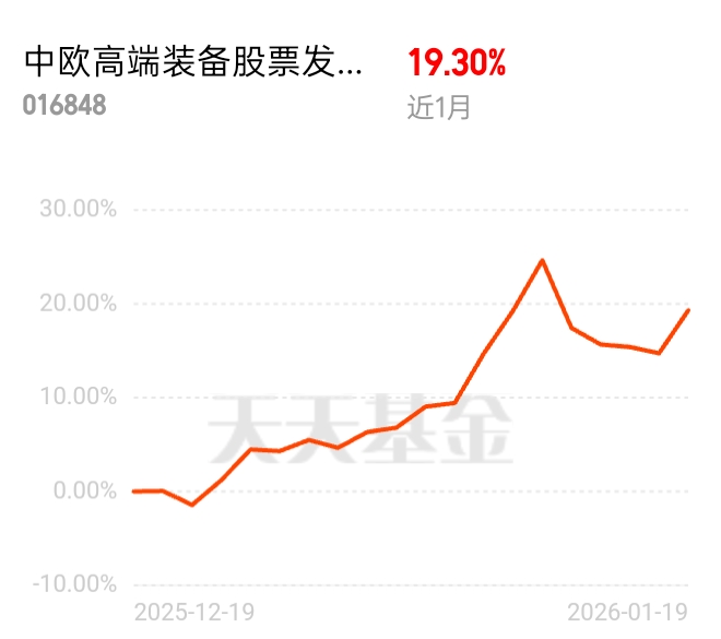 近期军工 ETF 受资金追捧,板块景气度持续上行,商业航天和十五五规划带来双重利好。资源弹性哪有军工航天香,主线清晰不折腾,中欧高端装备股票发起 C 近 1 月 19.30%,前十大重仓聚焦核心资产,昨日还涨了 3.98%。