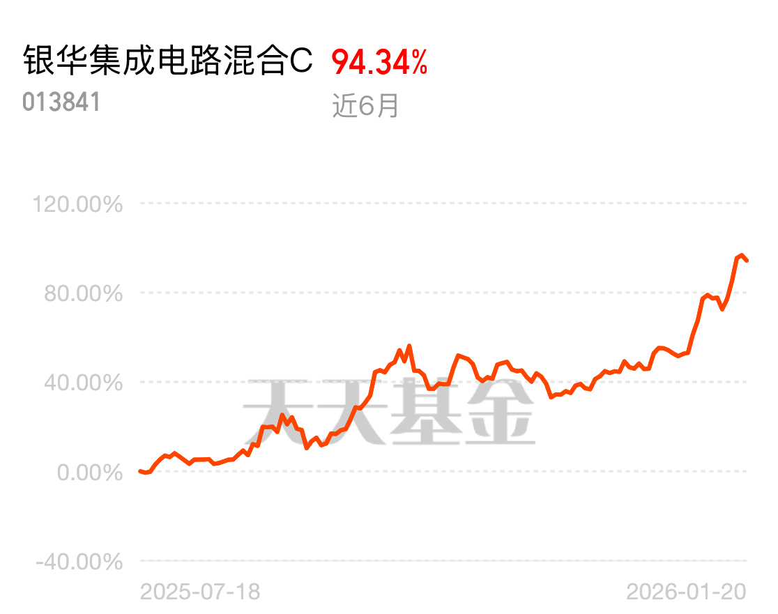 芯片产业链各环节协同发展,行业景气度不断提升。银华集成电路混合C近6月94.34