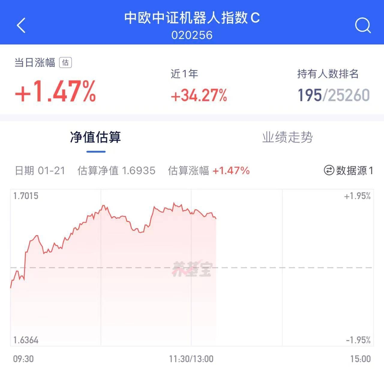 头部整机厂扩产忙,零部件企业订单排满,人形机器人产业链一片火热。国产替代加速,AI 赋能下行业成长空间打开,短期波动不改长期趋势,近 6 月涨 23.84%,中欧中证机器人指数发起 C 值得关注。$中欧中证机器人指数发起C$