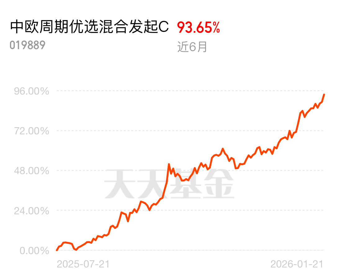近期市场轮动速度特别快,科技板块靠着政策利好热度不减,可估值已经到了高位区间追高需谨慎,有色板块韧性十足今儿回调是机会,中欧周期优选混合发起 C 近 6 月 93.65%,踩准周期节奏轻松把握行情