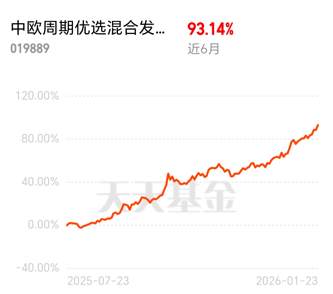 想抓黄金和有色的红利就看$中欧周期优选混合发起C$ ,这只基近 6 月涨了 93.14% 超给力,1 月 22 日金价破 4900 美元后涨势不停,美联储政策要转向、美元有信用危机,避险需求拉满,机构看高金价到 5000,有色板块也一直表现亮眼