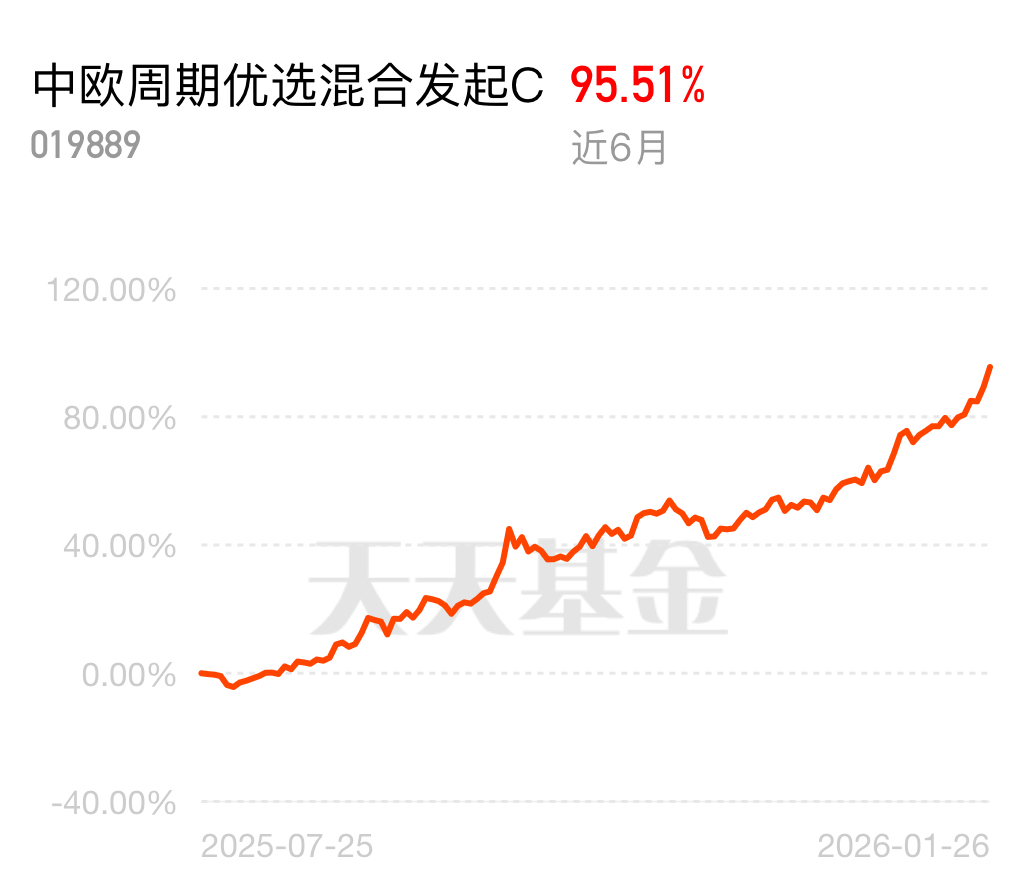 看清大势才能赚大钱,全球大宗商品迈入超级周期,地缘冲突、货币超发等共振推升,有色金铜迎戴维斯双击,中欧周期优选混合发起 C 近 6 月 95.51%,紧跟周期布局稳稳赚$中欧周期优选混合发起C$ $国投瑞银白银期货(LOF)A$ $长安鑫旺价值混合C$