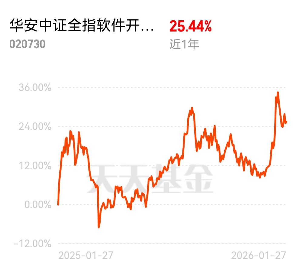 华安中证全指软件开发 C$华安中证全指软件开发ETF发起式联接C$ ,再涨 0.34% ,近 1 年涨 25.44%,踩中 AI 软件风口,我拿着稳稳跟涨超安