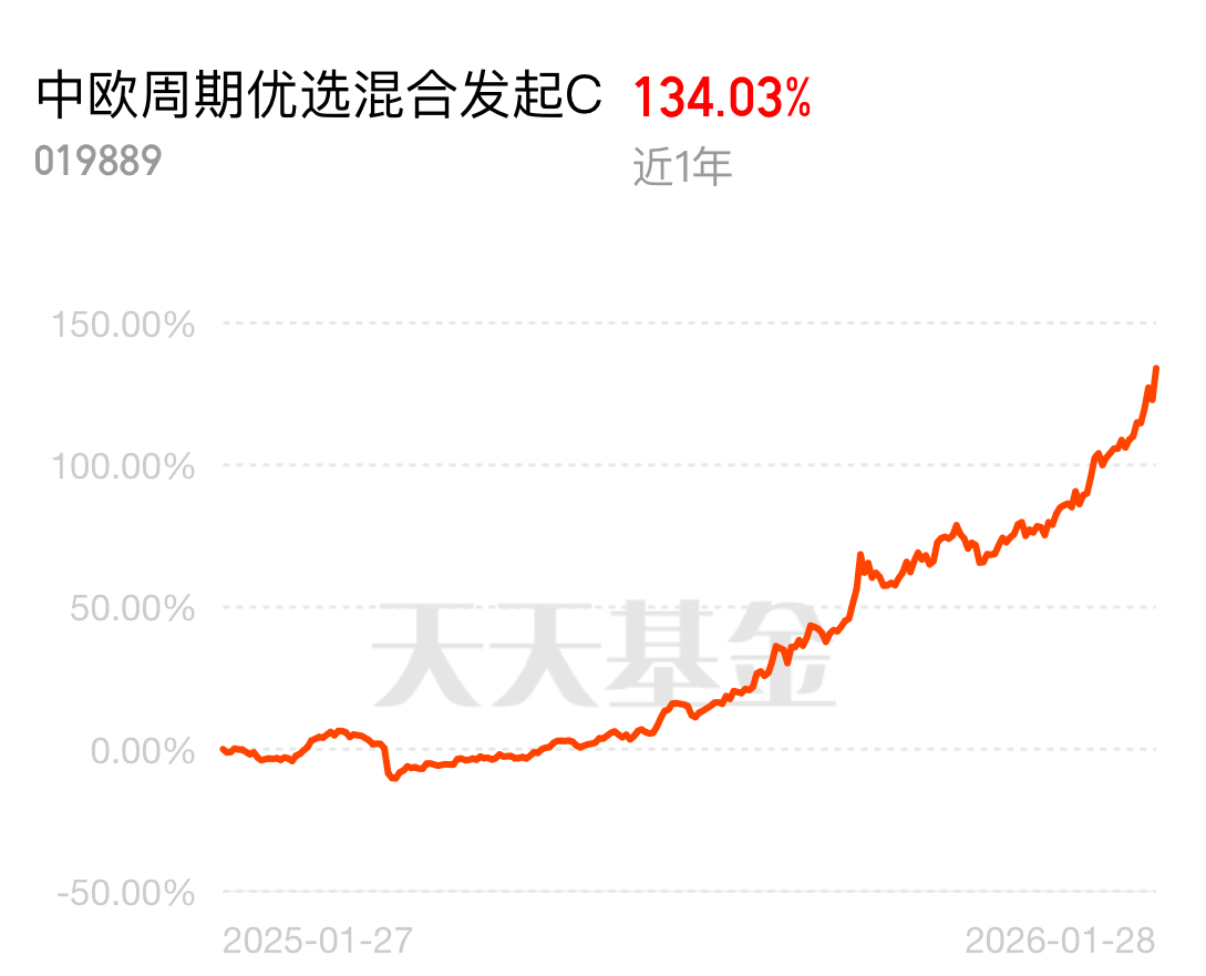 手握中欧周期优选混合发起C太香了,这只基金近1年收益达134.03%,精准布局大