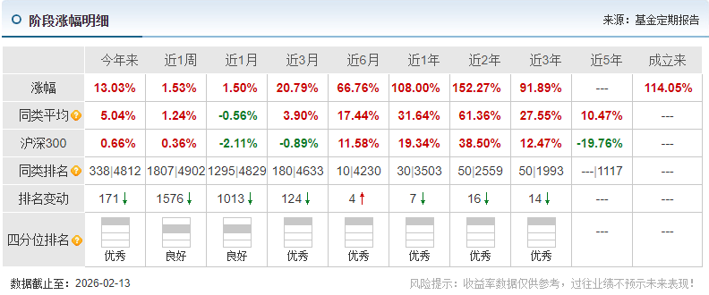 截至春节假期之前,这只基金近一年的涨幅达到了99.79%,也就是说,持有一年时间,差不多能实现翻倍收益,这样的业绩表现,在同类基金中绝对算得上佼佼者。可能有朋友会说,过往业绩不代表未来表现,但在我看来,一只基金能在一年时间里取得这样亮眼的成绩,背后离不开优质指数的支撑,更离不开基金公司和基金经理的专业运作。尤其是在有色金属板块波动较大的市场环境下,还能保持这样稳定且出色的表现,足以说明这只基金的实力。后续随着有色金属板块的持续景气,这只基金的业绩大概率还会继续发力,不用过分担心业绩拉胯的问题。