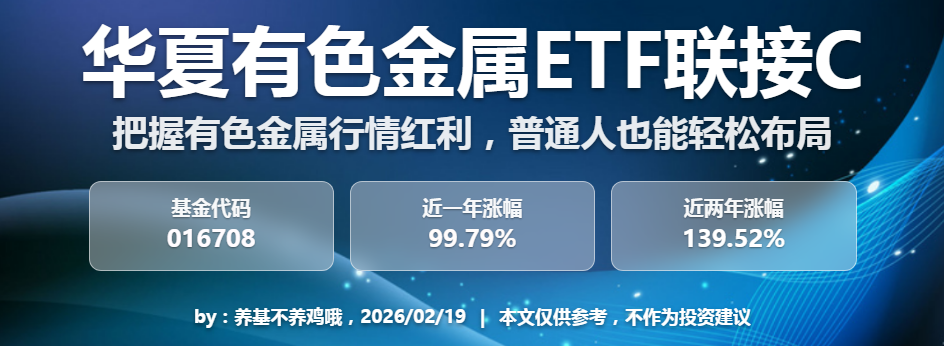 聊完了对于有色金属的看法后,想必很多朋友都会问,普通投资者该如何把握这个行业机遇?毕竟大多数人没有足够的时间天天研究个股,也没有精力去筛选哪些矿山企业更具投资潜力,结合我自己多年的投资经验,普通投资者想要把握有色金属的行业机遇,不妨看看指数基金——一键布局整个板块,既能有效分散风险,又能稳稳吃到板块上涨的红利,省时又省力。而华夏有色金属ETF联接C(016708),就是我近期锁定的投资标的,这份选择绝非偶然,而是它精准戳中了普通投资者的需求。