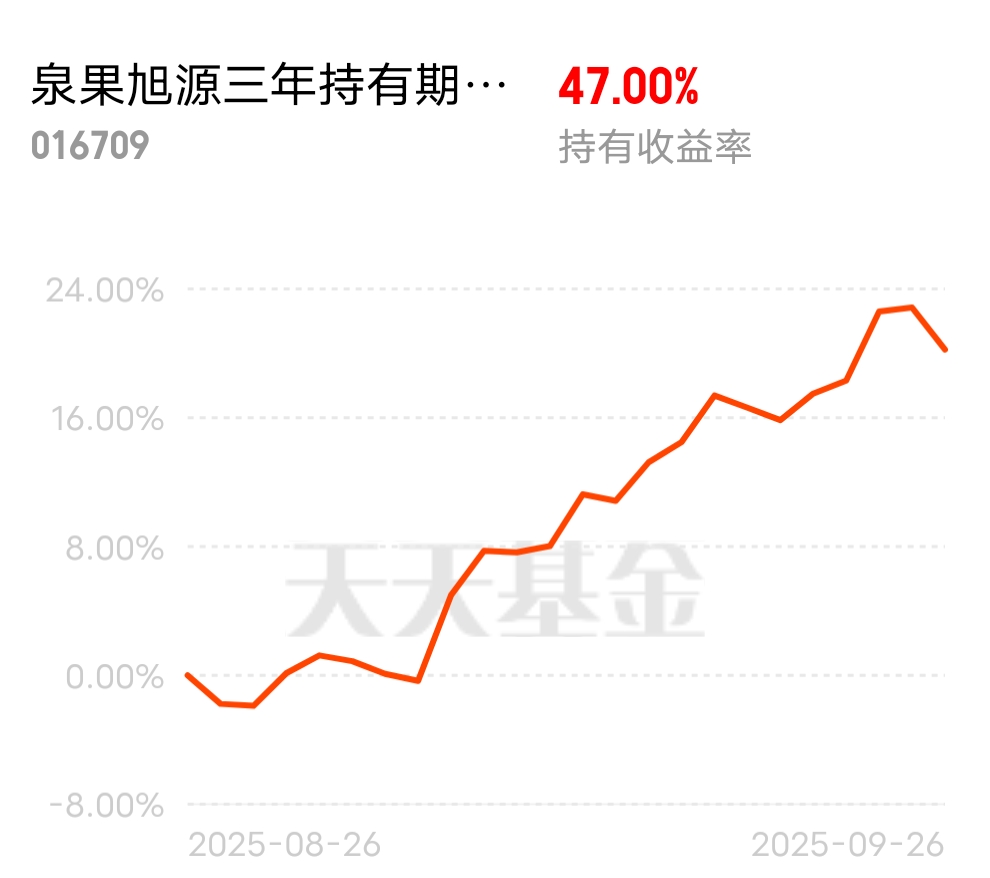 $泉果旭源三年持有期混合A$看来今天又能跟着吃肉了,估值迎来上涨趋势,表现不错