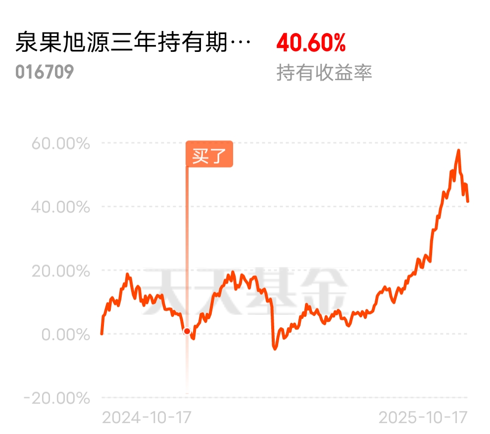 这基今天持仓飘红了,看来迎来上涨趋势了,继续坚守下去$泉果旭源三年持有期混合A$