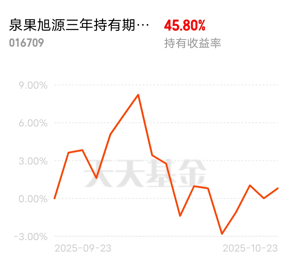 $泉果旭源三年持有期混合A$今天这基估值上涨的趋势,继续跟着吃肉了
