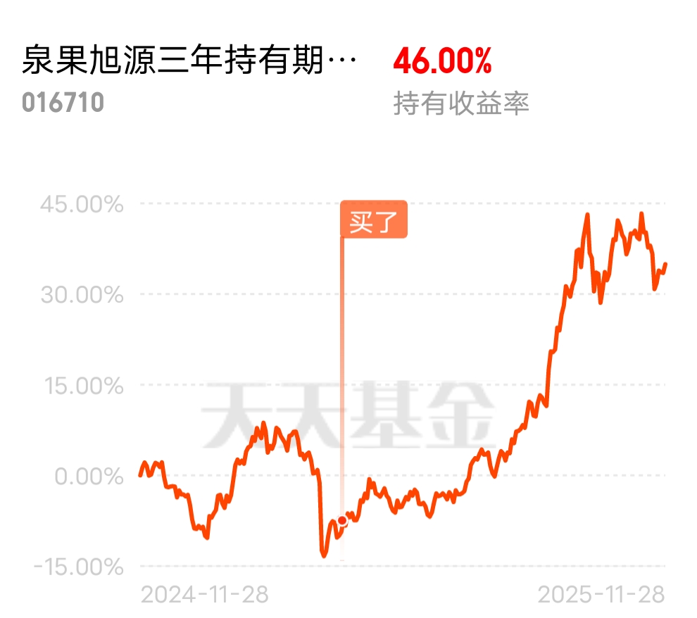 $泉果旭源三年持有期混合C$这基目前估值涨1个点,能跟着吃肉就好
