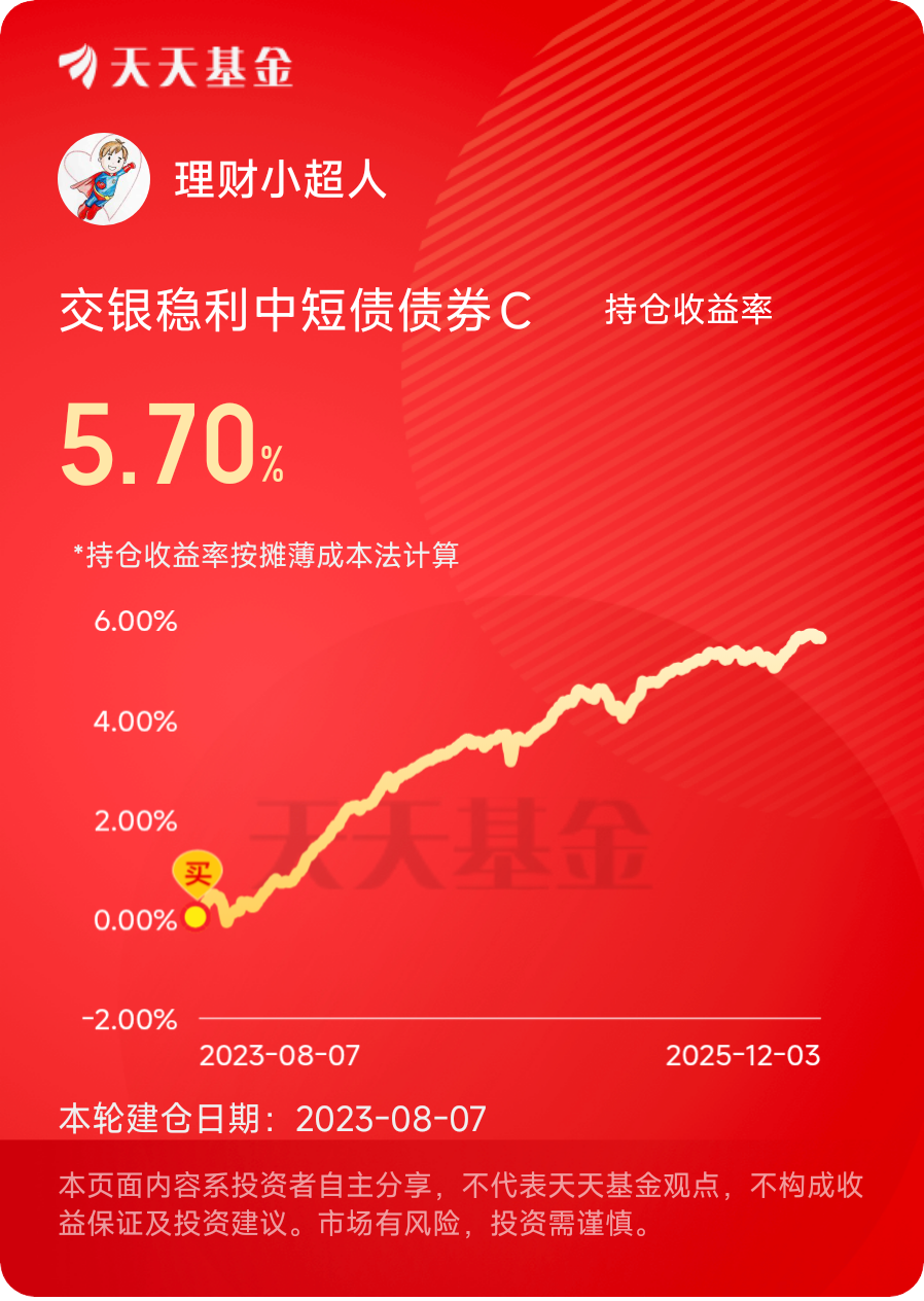 $交银稳利中短债债券C$ 波动小,业绩稳定,震荡行情,配置债基挺不错的#机构:看好“春季行情”提前开启# #晒收益#