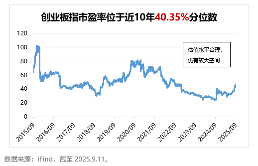 美联储目前仍处在降息通道,国内货币和财政双宽松。在美联储降息周期中,科技成长股往往率先反弹,而科创板、创业板作为新质生产力核心载体,其反弹空间远未结束。政策层面,“科创板八条”持续释放并购重组利好,鼓励产业链上下游整合,为科创板注入长期发展动能。产业端,AI算力需求持续爆发,科技巨头财报交叉验证产业趋势;资金端,全球降息潮开启,货币宽松环境为科创板提供充裕流动性。估值层面,截至9月11日,创业板指数最新市盈率PE(TTM)分别为46.17倍,处于历史40.35%分位水平,即估值低于历史59.65%的时间,具备较好估值性价比。