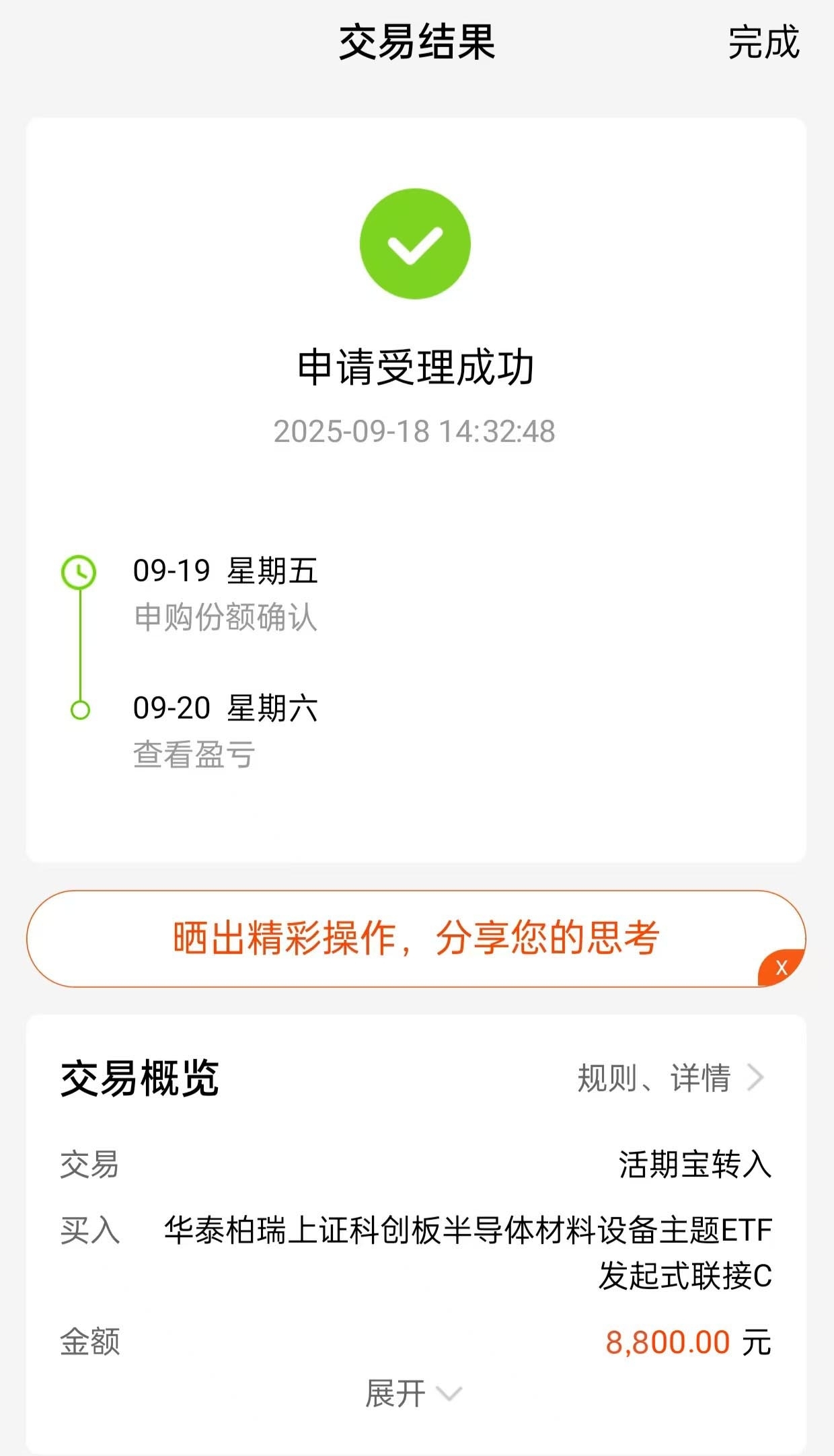 英伟达入股英特尔,半导体行业合作不断。国内半导体设备行业正处投资黄金窗口,$华泰柏瑞上证科创板半导体材料设备主题ETF发起式联接C$(024975)投资于半导体材料设备领域,捕捉行业发展的投资机会