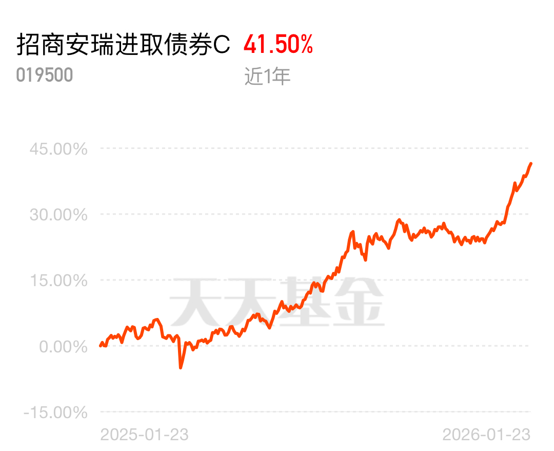玩理财的都盯紧点招商安瑞进取债券C,近1年41.50%的收益太能打了,稳稳的幸福