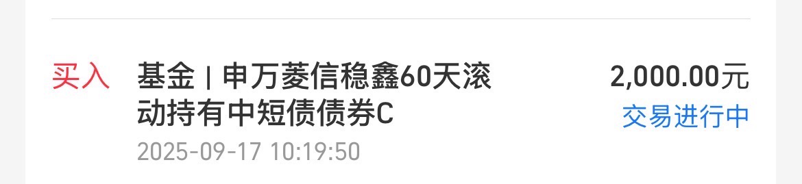$申万菱信稳鑫60天滚动持有中短债债券C$}+2000元,这是一支短债,属于防守