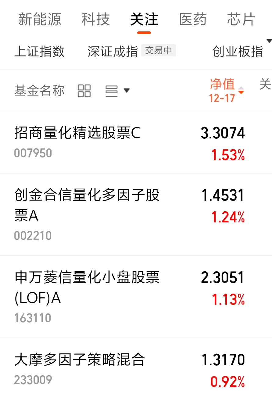 今日市场分化,创业板下跌、沪指上涨,商业航天起飞,消费板块有所好转,当前市场我觉得热点变化的太快,我觉得还是多多关注宽基或者策略基,像我最近关注的$招商量化精选股票C$ 007950昨日上涨了1.53%表现不错!