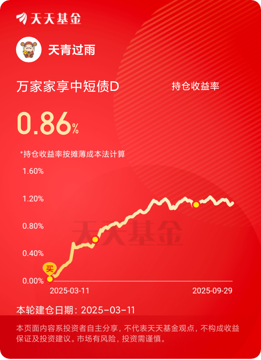 连续收蛋,选这个真的太安心。$万家家享中短债D$