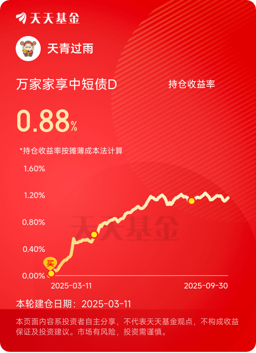 节前连涨3天真给力,节后继续加油哈$万家家享中短债D$ #晒收益#