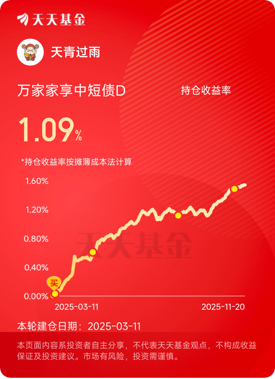 波动行情下就靠债券基金压舱石,靠谱$万家家享中短债D$ #晒收益#