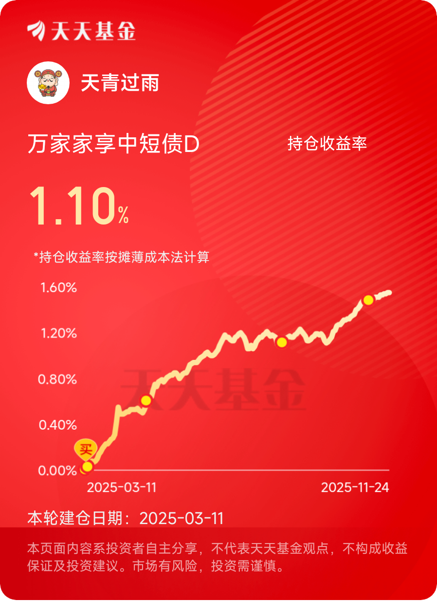 给我带来了躺赢的快乐,不用一直盯着,长期趋势向上$万家家享中短债D$ #晒收益#