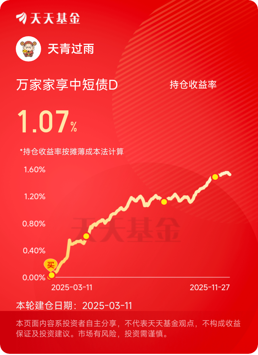 现在市场波动大,长期稳定收益才是正解$万家家享中短债D$ #晒收益#