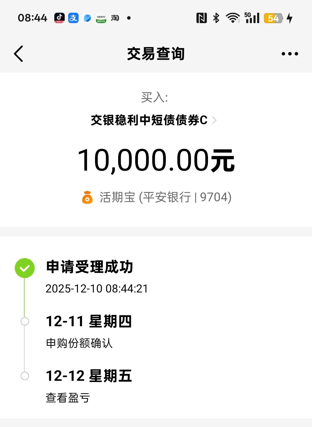 现在资金从存款向投资迁移,债基正好承接需求。我配置$交银稳利中短债债券C$后,不