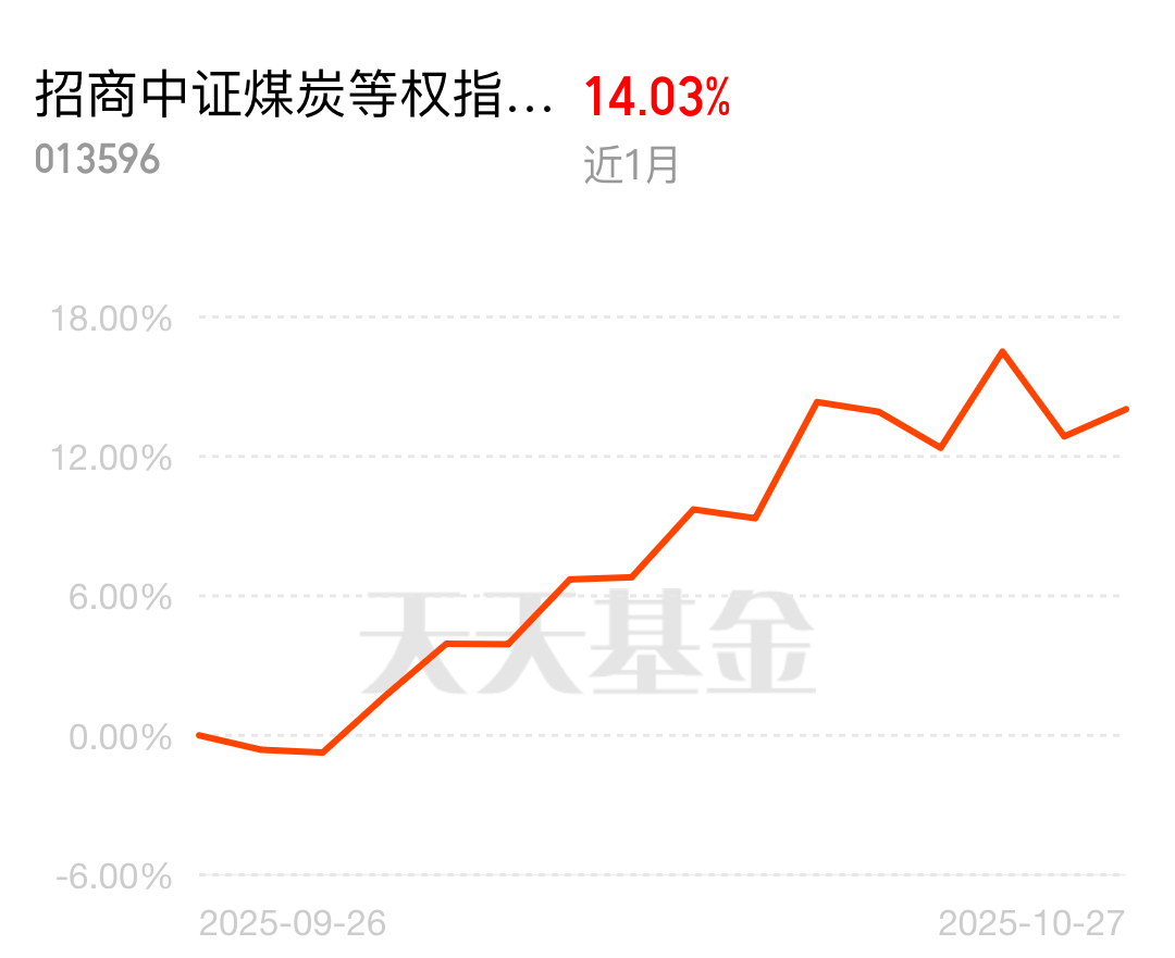 近期煤炭有点回调,今天跌超1%,但别着急离场。冷冬预期下,11月供暖需求会超预期。招商中证煤炭等权指数C近1个月14.03%,回调加仓能抓涨。
