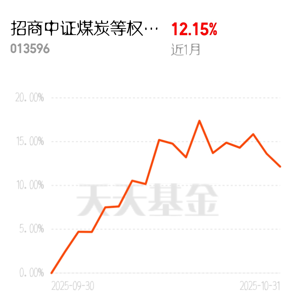 产地煤价跟降后稳住了,不会再跌,四季度只会震荡上行,趋势好。招商中证煤炭等权指数C近1个月12.15%,上行趋势里赚钱。