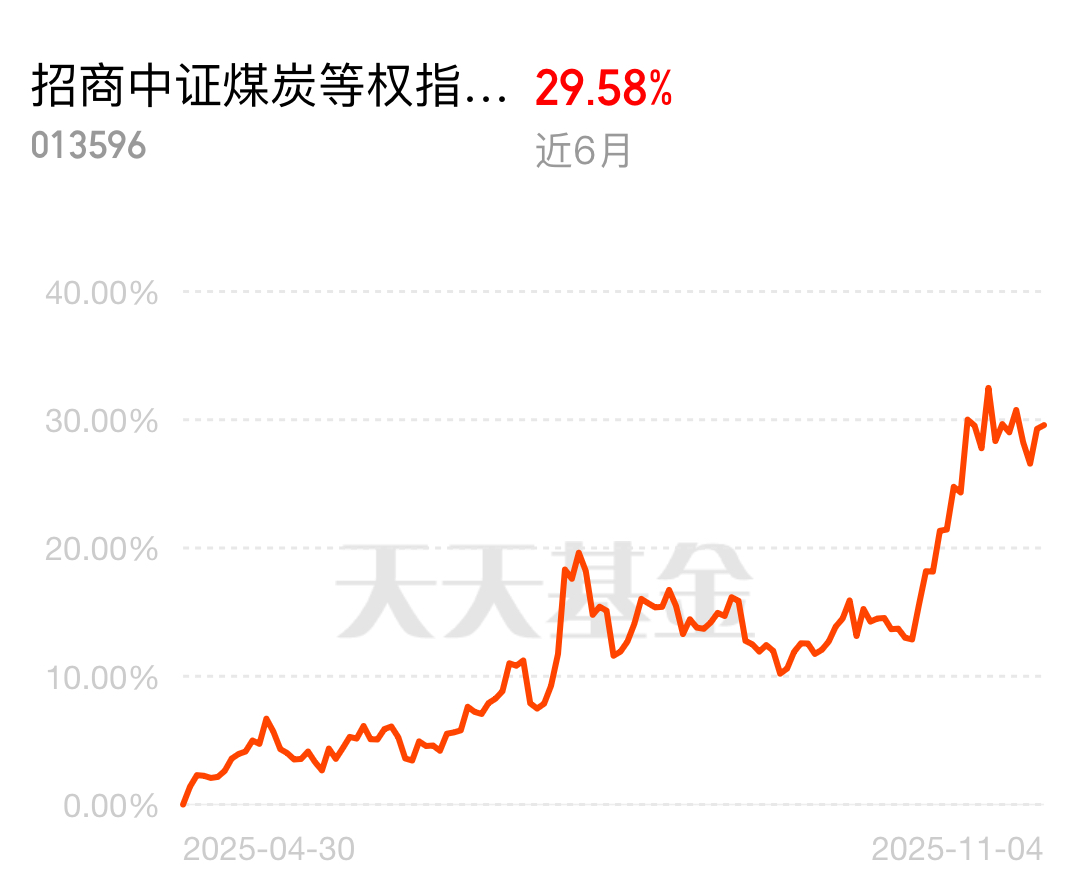 早盘行情里,煤炭板块成了盘面的亮点,走势扎实,没怎么回调。跟踪这个板块的招商中证煤炭等权指数C,近6个月29.58%的表现很靠谱。