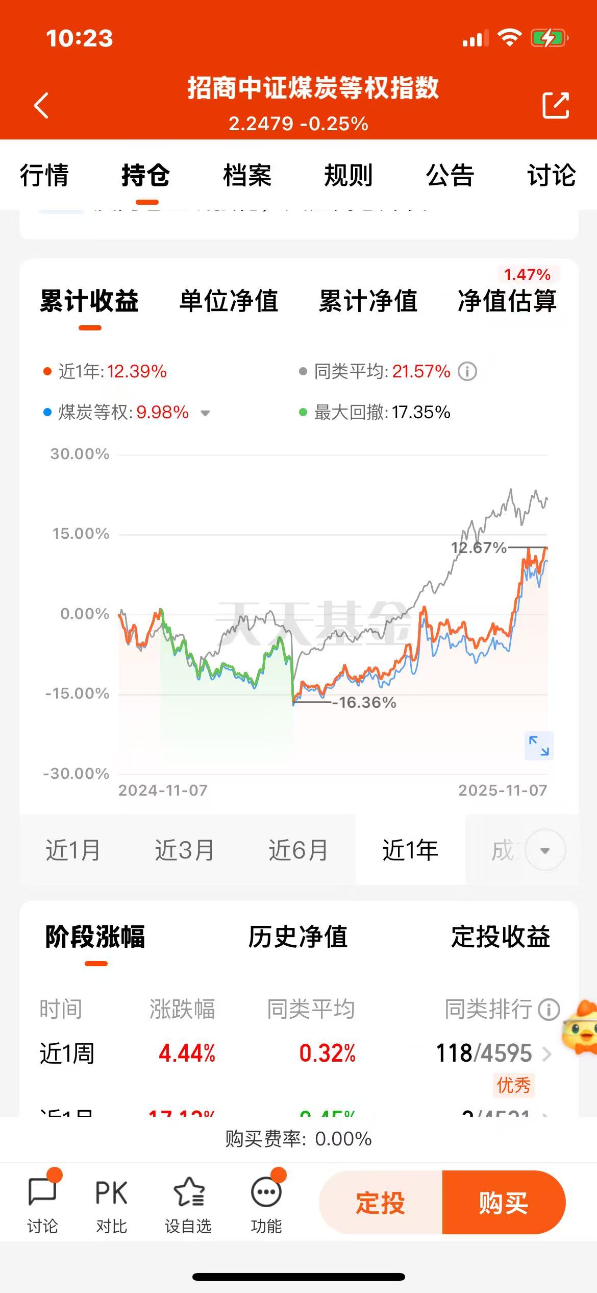 $招商中证煤炭等权指数(LOF)C(OTCFUND|013596)$估值上涨近1.50%