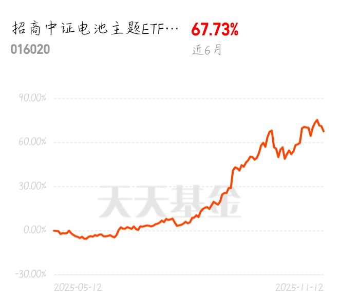 储能项目建设如火如荼,电动车销量也一路高歌猛进,电池的市场需求持续旺盛。招商中证电池主题ETF联接C近6个月涨了67.73%,今日继续上涨,行业明年预计增长25%-30%,估值合理,中长线持有能享受到行业增长的红利。