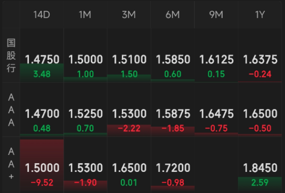 资金面上,今天逆回购到期规模为1199亿元,央行投放2830亿元,除此之外,还开展了8000亿元的买断式逆回购,大力呵护资金面。盘中资金面受税期影响有所收紧,隔夜资金价格和7日资金价格双双上破1.5%,不过央行呵护资金面的态度还是在的,资金面收紧大概率不会持续很久。