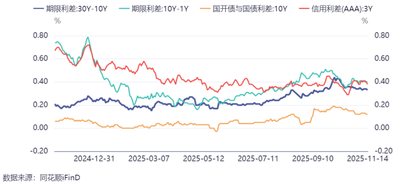 新的一周,债市依然维持窄幅震荡的格局,目前十年期国债活跃券收益率小幅下行,幅度仍然在1BP以内,国债期货全线翻红上涨,利率债盘面尽数翻红,信用债则是稍显分化,有涨有跌。期限利差有反弹的迹象,信用利差持续收窄。