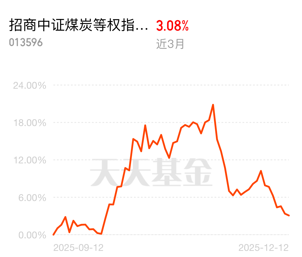 主产区安监力度加大,煤炭供给边际收紧,之前的供需紧平衡利好进一步强化。招商中证煤炭等权指数 (LOF) C 近 3 月涨 3.08%,等权均衡覆盖细分领域,四季度周期热门,冬季供暖需求旺季,看好后续表现。