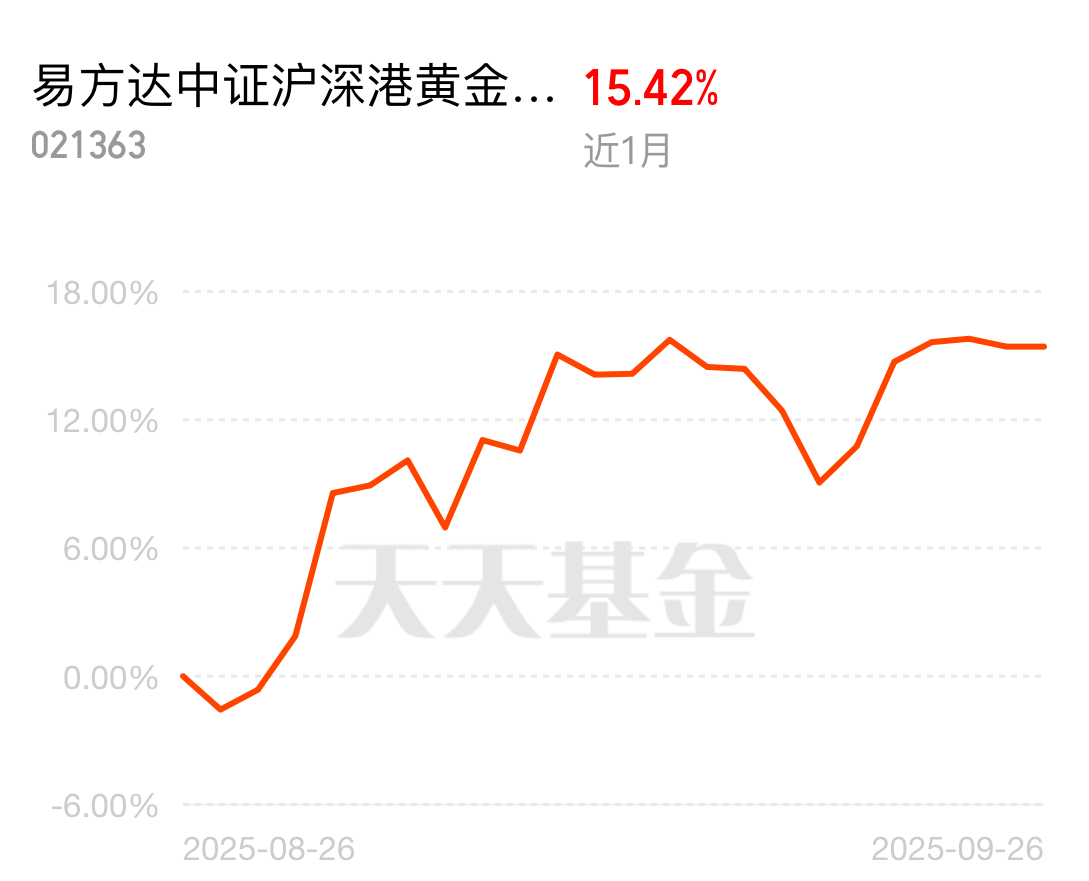 黄金价格突破关键点位,产业链上的公司盈利预期变好,行情要起飞。易方达中证沪深港黄