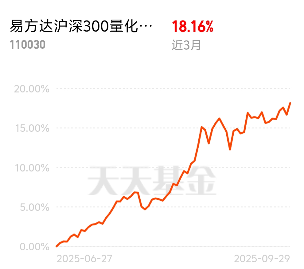 这阵子行业轮动频繁,单个行业很难一直领跑。这种行情下大仓位都爱选均衡宽基,易方达沪深300量化增强不错,今年以来18.33%远超沪深300指数,近1个月涨2.18%。$易方达沪深300量化增强$