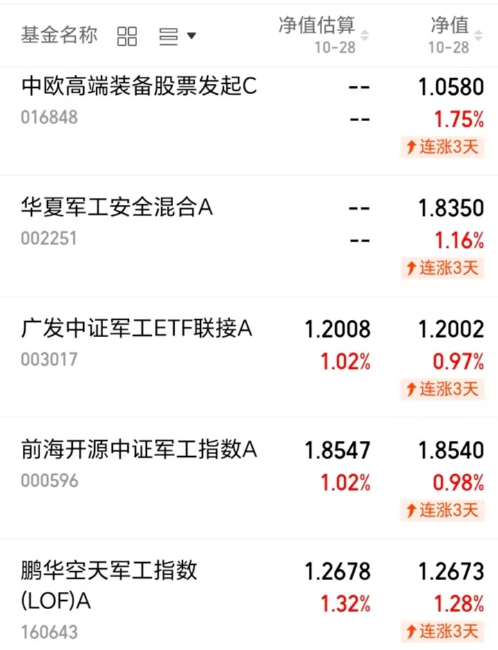 $广发中证军工ETF联接A(OTCFUND|003017)$今天上涨0.97%;