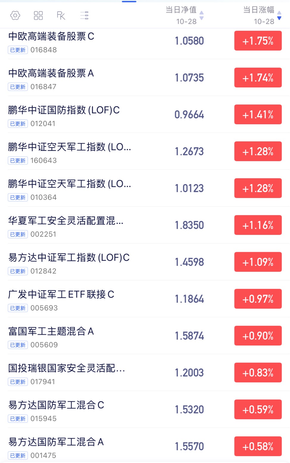 军工板块看过来!中欧高端装备股票今日大涨1.75%!