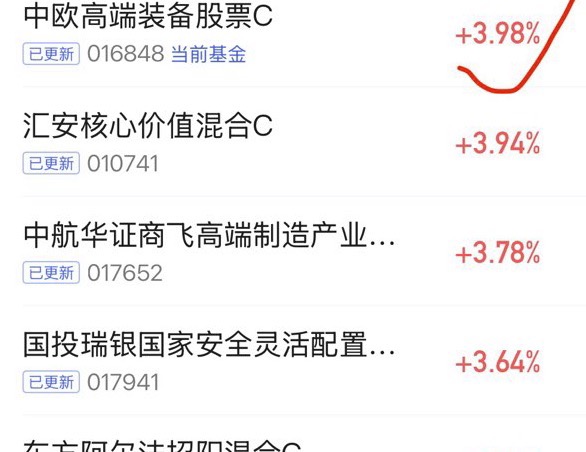 $汇安核心价值混合C$ 上涨3.94%