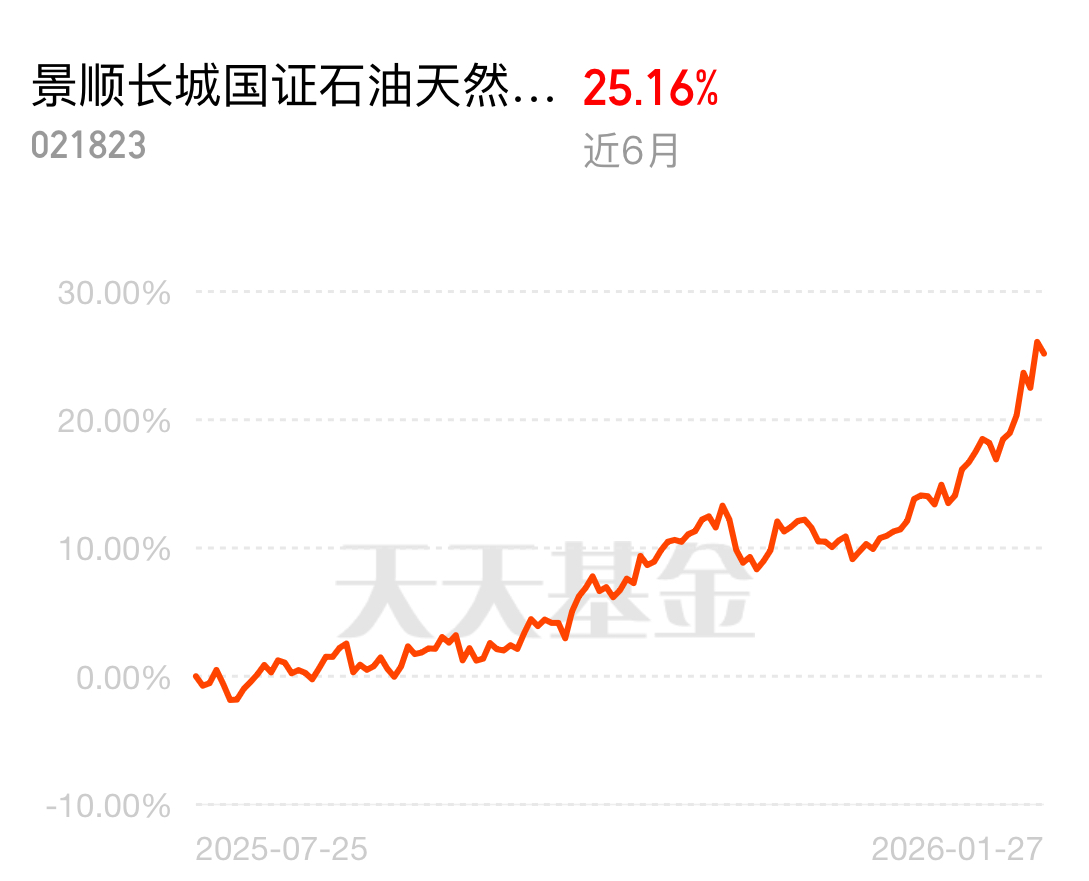 美国的极端寒潮给油气市场送了波大行情,叠加地缘政治紧张,贵金属油气暴涨,油价淡季不淡,景顺长城国证石油天然气 ETF 发起式联接基金 C 近 6 月 25.16%,跟踪国证油气指数